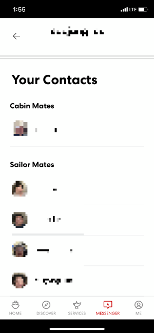 버진보야지 크루즈 어플에 미리 정보를 등록해 두면 여행을 함께하는 일행이 보여진다.