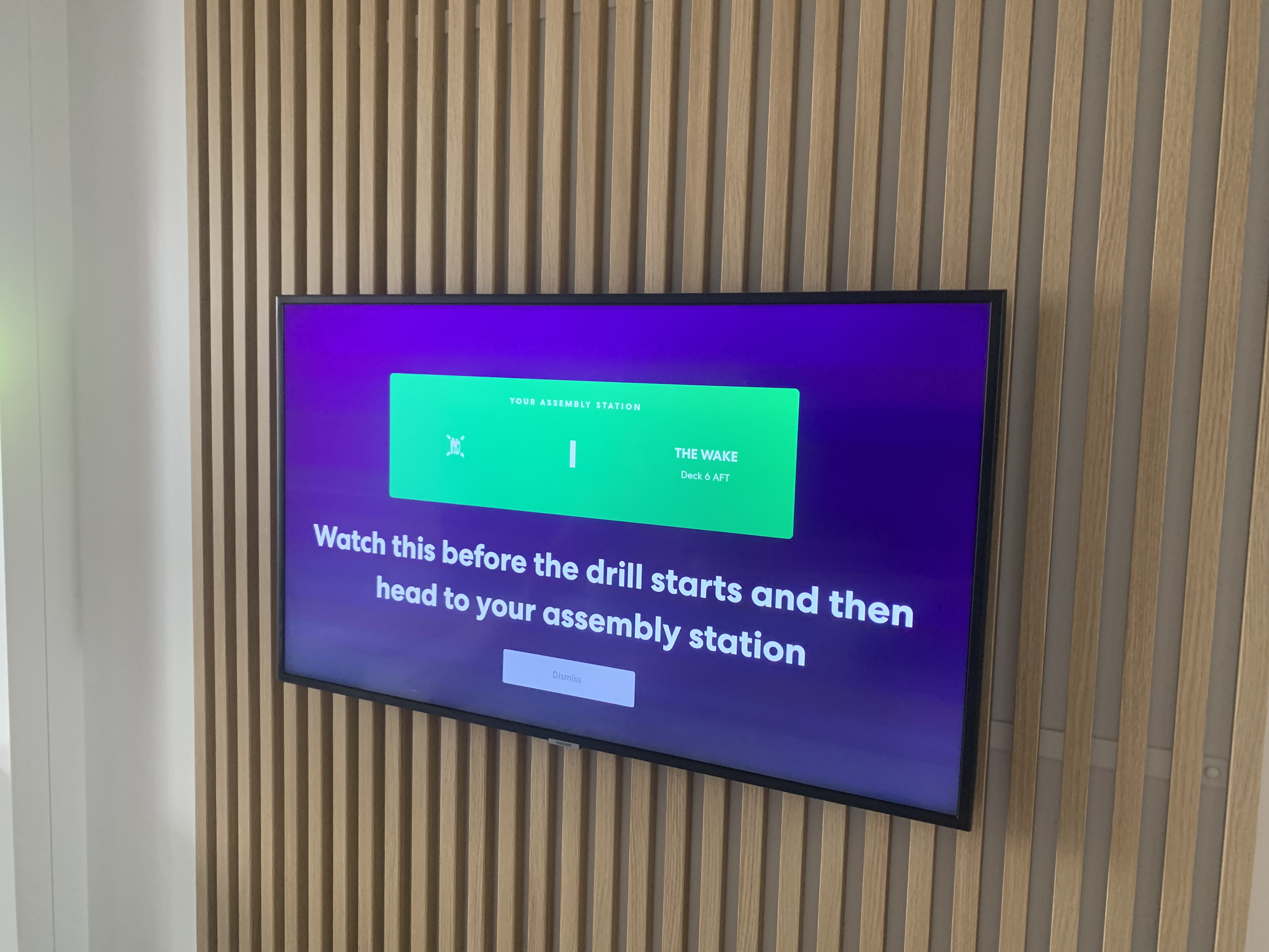 다른 크루즈도 마찬가지지만, 탑승하면 안전교육을 들어야 한다. 버진크루즈는 객실안에서 화면으로 진행되고, 모이는 장소가 있었다.